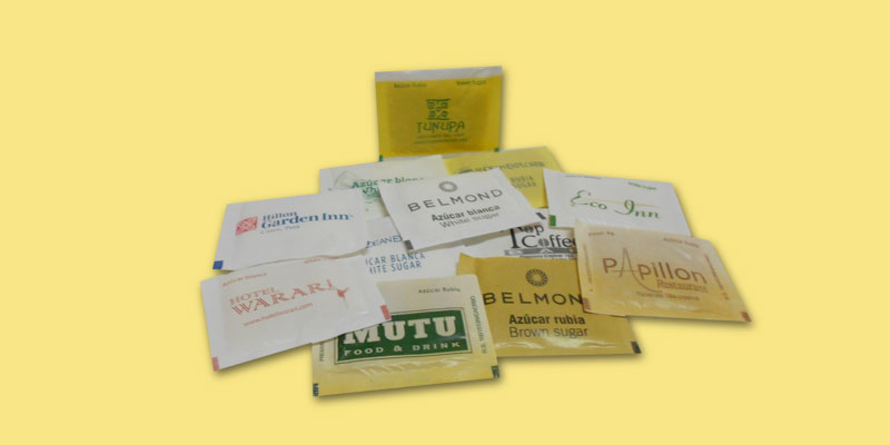 Azúcar rubia y blanca en Sachets personalizados para hoteles y restaurantes.